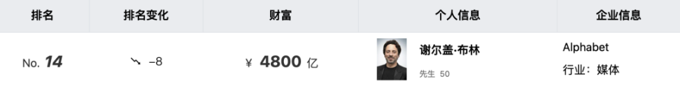 让人意想不到的是,当网友查看这份简历的源代码时,还惊奇地发现布林在那时代码注释里面隐藏了一个自己对未来的“小目标”——「一个大办公室,高薪,但工作很少。经常去异国他乡旅行会更好。」当时的他或许也想不到,很快这个目标就从后来的 Google 公司得到了实现。在斯坦福大学攻读研究生期间,布林遇到了研究生同学拉里·佩奇。那时的两人在交流学习中,都对增强从互联网上积累大量数据中提取更有意义的能力感兴趣。在这一想法驱使下,其二人展开合作,设计一种新型搜索技术,即可以根据其他页面链接的点击频率对链接进行排名。后来这个想法变成了一种链接分析算法 PageRank 得以落地,它通过对超链接集合中的元素用数字进行权重赋值,实现“衡量集合范围内某一元素的相关重要性”的目的,也是 Google 搜索引擎早期的基础算法。该搜索产品于 1996 年在斯坦福大学网络上上线。当然,那时他们开发的产品还不叫 Google,而是叫 BackRub 搜索引擎,简单翻译过来叫“搓背”。之所以取这样“直白”的名字,布林和佩奇觉得该程序分析了网络的“反向链接”,以了解网站的重要性以及它与哪些其他网站相关,也相当于从背部分析,所以就叫背部按摩,即搓背。但到了 1997 年,佩奇似乎认为 BackRub 这个名字还不够好。1998 年中期,布林和佩奇开始接受外部融资,他们最终从投资者以及家人和朋友那里筹集了约 100 万美元,并将更新后的搜索引擎命名为 Google,并创建了 Google Inc.。进而布林成为该公司的技术总裁,佩奇成为 CEO,二人共同管理着这家历史上增长最快的公司之一。2001 年,佩奇和布林在投资者的要求下聘请了 Novell 首席执行官埃里克·施密特(Eric Schmidt),他接替佩奇成为 Google CEO。2004 年 8 月 19 日,谷歌公司首次公开募股 (IPO),筹集了 17 亿美元,使谷歌的估值达到 270 亿美元,为布林带来了超过 38 亿美元的净收益。2011 年 4 月,布林辞去技术总裁职务,转而担任特别项目总监。随后 Google 规模越来越大,从收购 Android、YouTube,再到推出 Chrome 浏览器、Google Glass 原型等等,Google 早已从一家搜索巨头,到涉足自动驾驶汽车、可穿戴技术、Nexus 智能手机系列,以及涵盖人工智能、云和量子计算,甚至光纤互联网的众多其他产品和实验研究工作。2015 年, Google 重组,成立了一家新的控股公司 Alphabet,布林担任总裁。一直到 2019 年,随着一封联合公开信的发布,布林和佩奇在“如果公司是一个人的话,他已经是一个 21 岁的年轻人,该是时候离开栖息地了...尽管长期参与公司的日常管理一直是巨大的荣幸,但我们相信现在该扮演一个骄傲的父母的角色了_提供建议和关爱,而不是每天的唠叨!”声中,双双辞去总裁和首席执行官职务,只保留了谷歌母公司 Alphabet 董事会的职位,从此处于半退休状态,几乎不插手 Google 的日常运营,只是偶尔关注公司的未来发展。这边,布林和佩奇的隐退让不少 Google 员工感到失落。
