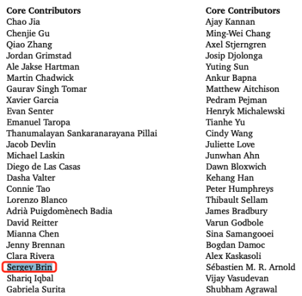 这篇 Gemini 论文不仅有近千位作者,占据论文 10 张页面才介绍完,还有许多人在核心贡献者名录下发现了一个非常熟悉的名字——谢尔盖·布林。