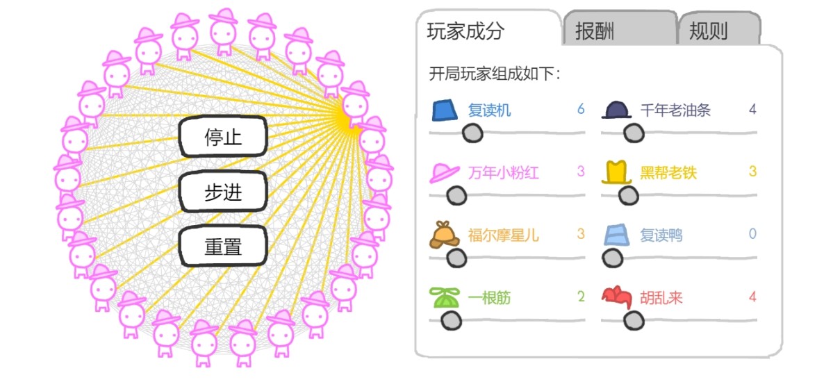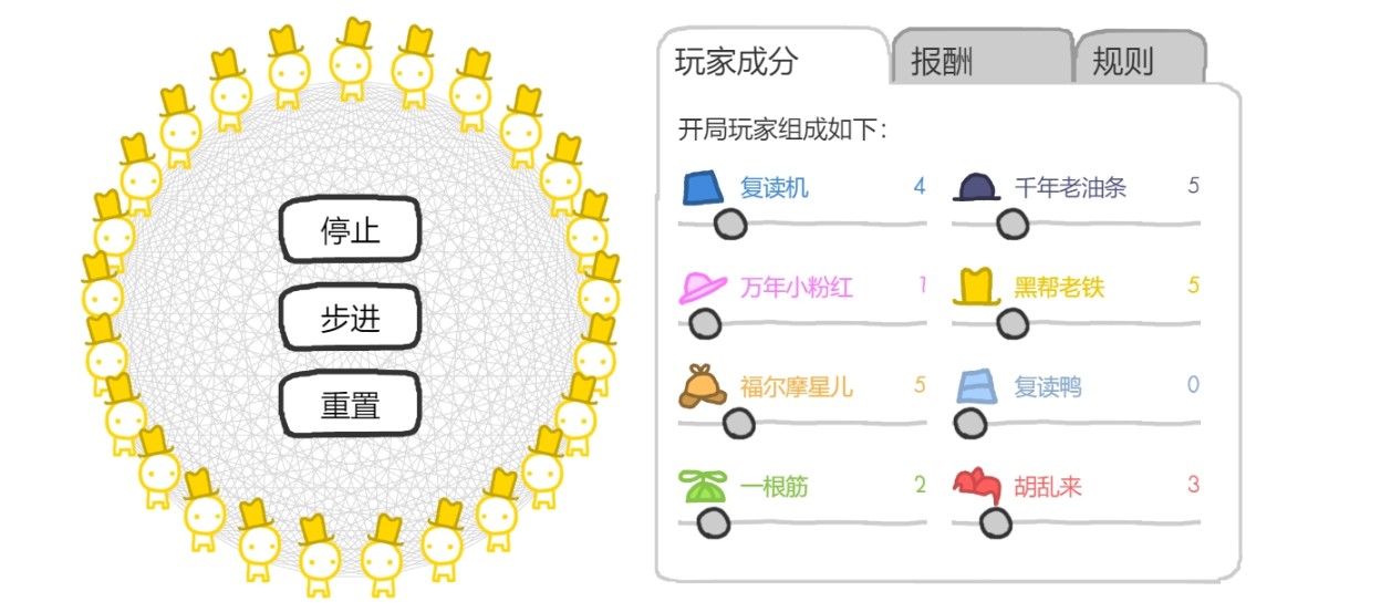 2.第二步,设定博弈环境。《信任的进化》允许设置的博弈环境参数有: