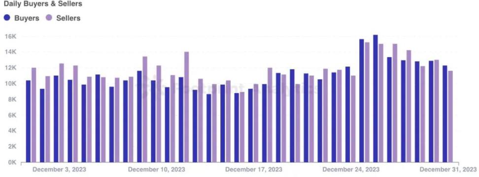 买家与卖家之间的比例为 102.1%,比 11 月份提高了 1.45%。具体来说,共有 180,232 名买家(增长了 22.7%)和 176,607 名卖家(增长了 21.0%)。