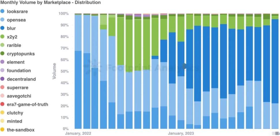 在 12 月份的 NFT 交易市场动态中,我们可以看到一些重大变化。Blur 的交易量增长了 45.4%,达到了 6.2 亿美元,而 OpenSea 的交易量上升了 25.2%,达到了 1.9 亿美元。然而,X2Y2 的交易量却下降了 32.0%。