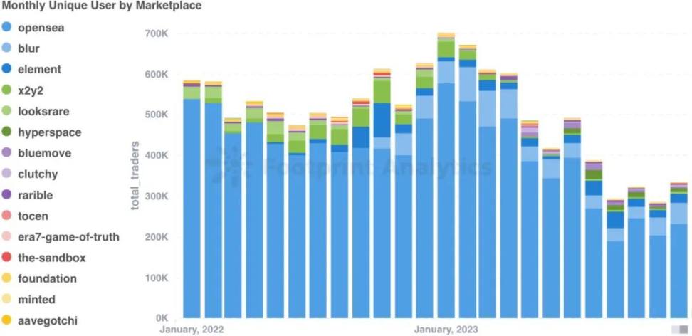 与此同时,Blur 的用户基础增长了 189.8%,达到了 291,579 人,标志着它在 NFT 市场的迅速崛起。
