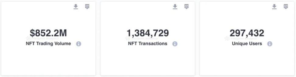 12 月份,NFT 市场交易量显著增长 32.3%,达 8.5 亿美元,交易笔数上升 29.4% 至 1,384,729 笔,独立用户钱包数量也增加 21.4% 至 297,432 个。
