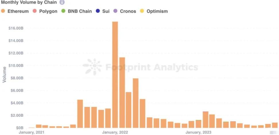 本报告基于 Footprint Analytics 的 NFT 研究页面提供的数据。该页面是一个全面且易于使用的仪表板,提供了了解 NFT 行业脉搏所必需的最新统计数据和指标,包括交易、项目、融资等等。