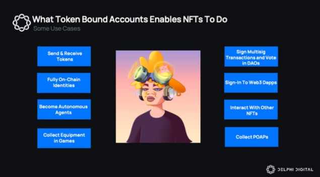 ERC-6551(或 Token Bound Accounts)是一个新标准,允许每个 NFT 拥有自己的个人钱包。NFT 现在可以在链上执行各种操作——拥有资产、执行链上活动和与其他应用互动。这为创新的数字消费体验开启了无限可能。