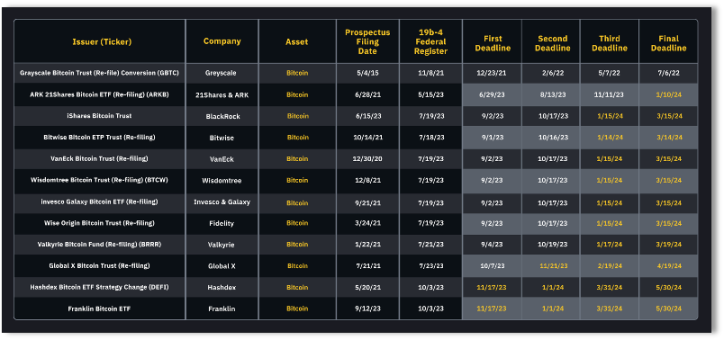SEC 如果批复「通过」,这些现货比特币 ETF 很可能一次性都获批。
