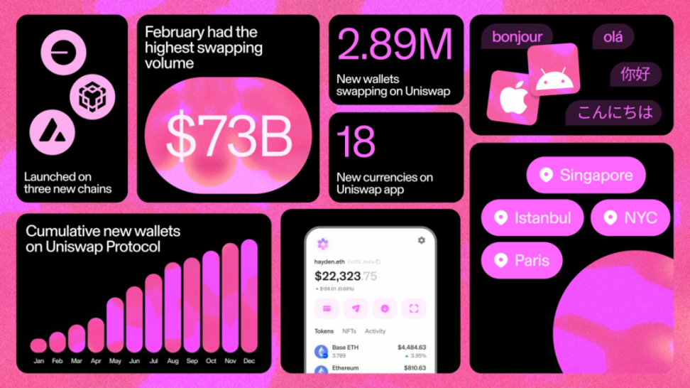 新产品推出: 推出 UniswapX、发布 v4 白皮书、将 Uniswap 扩展到新的链上,并将 Uniswap 带入 iOS 和 Android 平台。