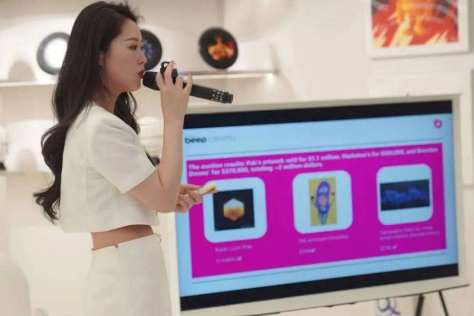 除了收藏之外,Mia 和她所在组织还定期进行线上线下的艺术家展览和策划。在 2021 年底和 2022 年初,Mia 所在组织与世界最大拍卖行之一苏富比联合拍卖了 Pak、Hackatao、Brendan Dawes 等三位艺术家的藏品,拍卖总额达 150 万美元。除国际拍卖行外,Whale 还曾经与国内知名拍卖行如保利、永乐合作举办艺术品展览。