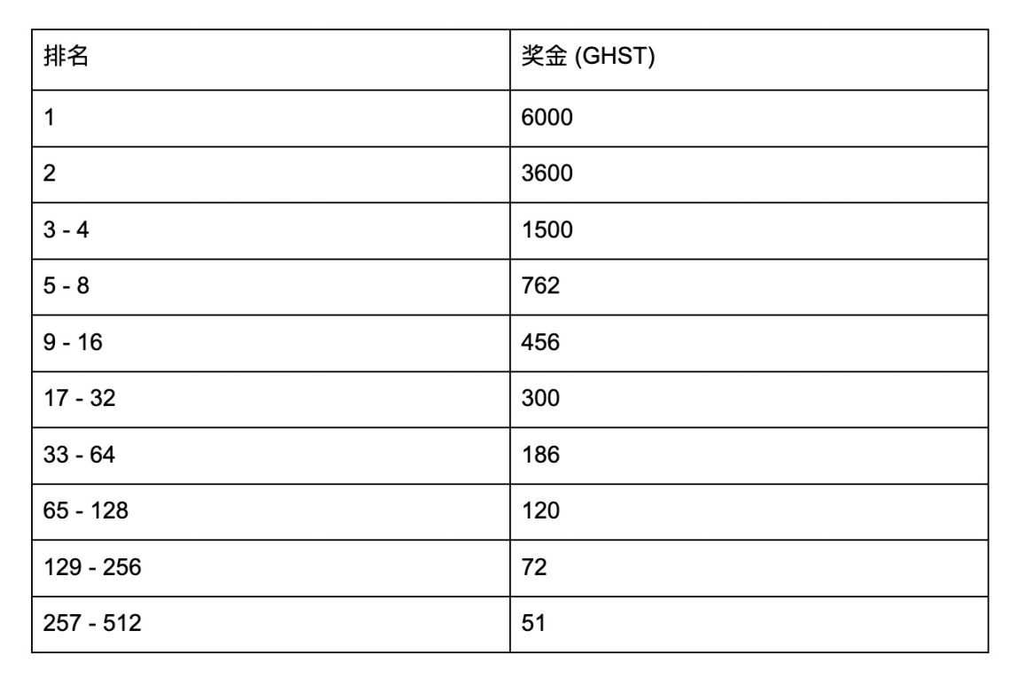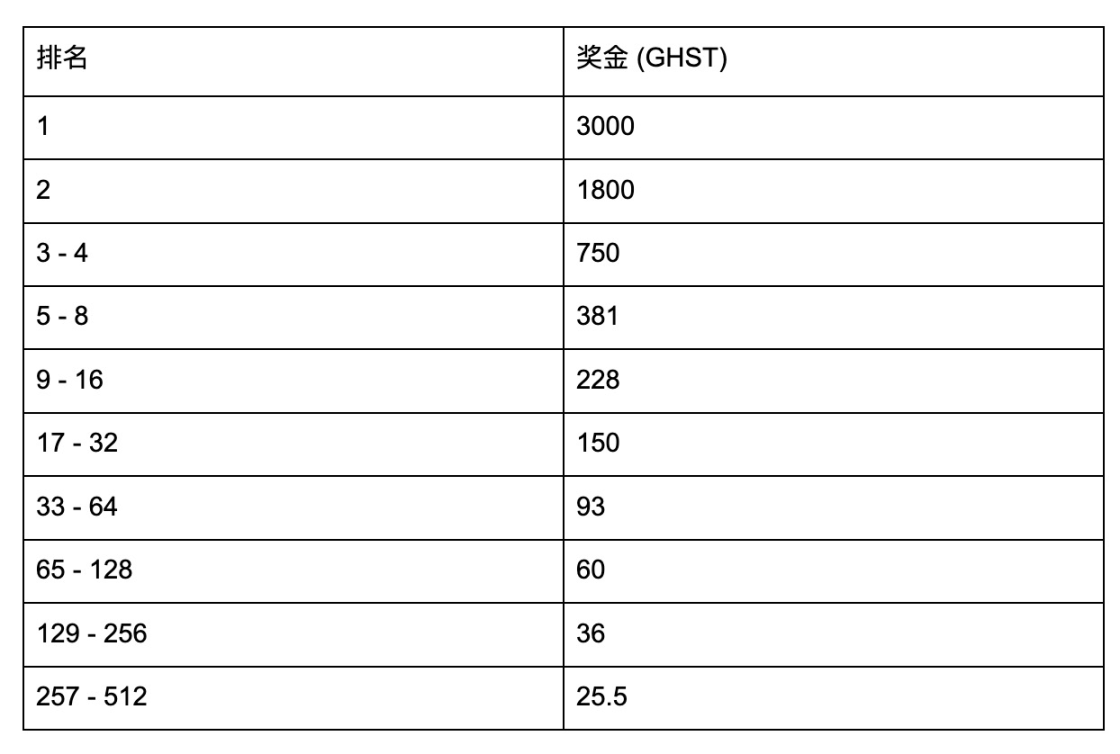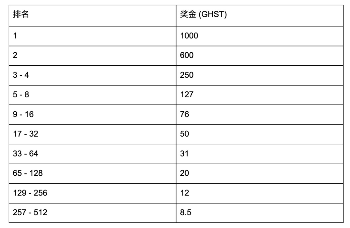 10,000 GHST 锦标赛奖励分配