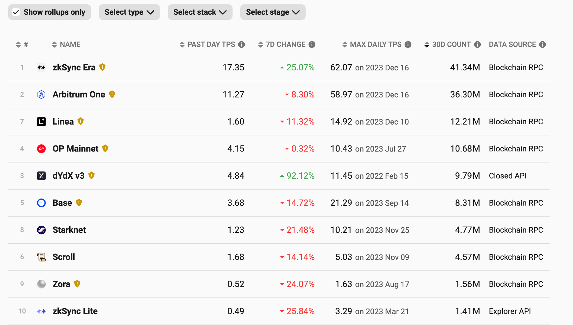 Dencun 升级对于所有基于以太坊的 L2 而言都是利好,但是在普适的利好之下,我们会重点观察哪些 L2 项目具有更加独特的竞争优势,能够吃到更多的 Dencun 升级带来的红利。