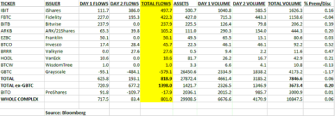而另一方面,刚刚获批的比特币现货 ETF 也开启了正式交易,在交易首日,ETF 喜迎开门红。