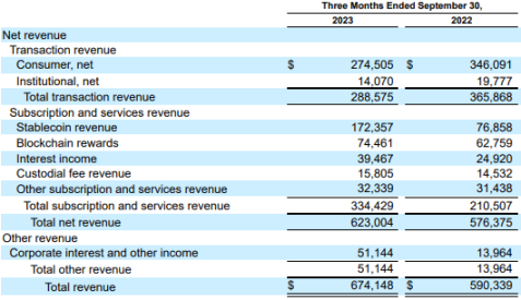 交易收入是 Coinbase 的主要收入,来源:Coinbase 财报