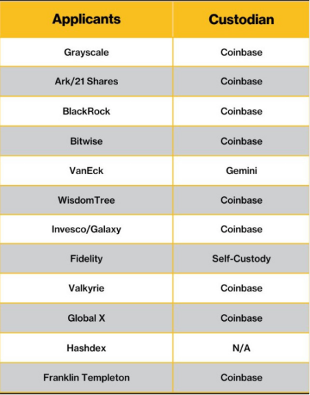 11 家 ETF 中有 8 家选择了 Coinbase 作为托管方,来源:X 平台