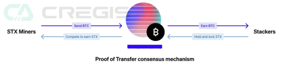 Stacks 是基于侧链的比特币二层网络解决方案,初始版本于 2021 年初发布。其目标为扩展比特币的功能,同时保持其核心特性,如去中心化和安全性。Stacks 本质上是在比特币链外构建了一条新链,拥有独立的治理结构和交易模式。和以太坊二层解决方案 Rollup 相比,Stacks 使用 PoX(Proof of Transfer)共识算法,并且交易验证者需要质押 STX 代币(挖 BTC),矿工则需要在 Bitcoin 主链上质押 BTC(挖 STX)。2013 年:Muneeb Ali 和 Ryan Shea 在普林斯顿大学计算机科学系学习时创立了 Stacks 公司。2017 年:Stacks 发布了 Blockstack 浏览器的公开 alpha 版本,已经获得了大量公众和投资者的支持,并在年底推出了价值 4740 万美元的代币发行。2018 年:超过 360 个应用程序使用 Stacks 开发。凭借市场热度,Stacks 的代币发行筹集了 2300 万美元。除了巨额资金之外,这也是美国历史上首次获得 SEC 认证的代币发行。2019 年:Stacks 2.0 都处于测试开发阶段。2020 年 1 月:Stacks 2.0 发布,标志着 Stacks 的新转折点,它引入了智能合约 、POX(转移证明)、Stacking。2021 年初上线:Stacks 2.0 的主网上线。2022 年:Stacks 继续着眼于改善发展、扩大社区规模以及引入与比特币网络交互的新方法2023 年 Q4-2024 年 Q1:推出 Nakamoto 升级Stacks 的技术架构包括核心层和子网,其核心层基于 PoX(转移证明)机制与比特币层进行交互,PoX 是类似 PoS 的权益质押,二者交互过程如下:STX 矿工:Stacks 网络中,STX 矿工通过在比特币区块链上发送交易来参与领导人选举。这个过程涉及到一个可验证随机函数(VRF),它随机选择每轮的领导人。在这个过程中,矿工通过提供更高的比特币出价来增加成为下一个区块领导者的机会。一旦获选为领导者,矿工将在 Stacks 区块链上创建并记录新的区块。STX 持有者的 Stacking:STX 持有者可以通过参与称为“Stacking”的过程来参与共识并获得比特币奖励。在这个过程中,用户将他们的 STX 代币锁定一个周期(大约两周),同时运行或支持一个完整节点,并通过 STX 交易在网络上发送有用的信息。积极参与 Stacking 的 STX 持有者会根据他们对网络的贡献获得相应周期内的比特币奖励。(三)Rootstock