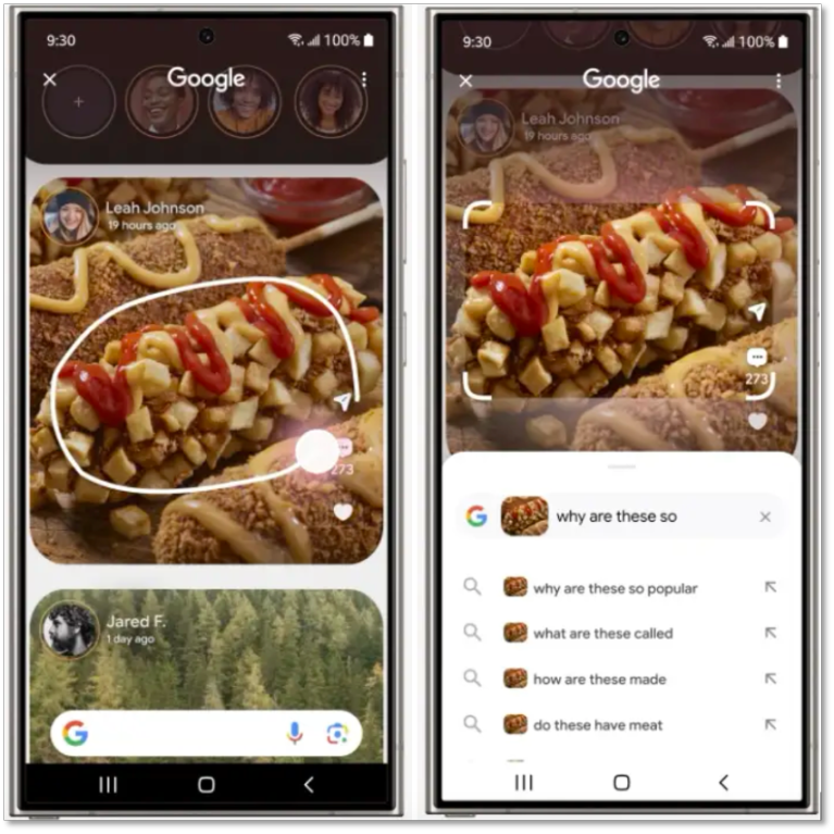发布会上,三星带来了颠覆现有手机搜索方式的「Circle to Search」(即圈即搜)功能,让人眼前一亮。这个功能只需长按主屏幕键,即可圈出你想搜索的东西。也就是说,搜索无需打开搜索引擎,画个圈就能获取屏幕上出现的图像、视频或文本中的相关信息。