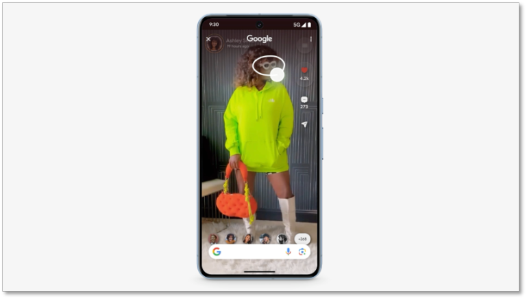 现在 Circle to Search 用圈圈儿的方式把细节搜索扩展到了图像和视频内容中,比如你在刷短视频时被一款美食吸引,你在页面中圈出它来,就能获得相关信息。