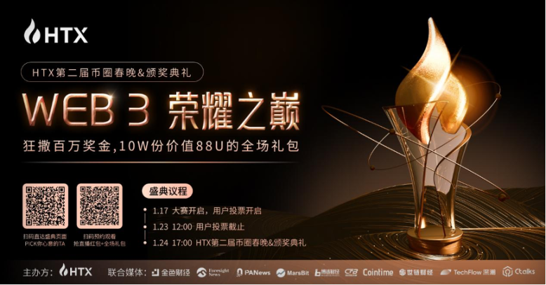 2024 年 1 月 24 日,火币 HTX 将举办一场引人瞩目的 Web3 荣耀之巅年度颁奖典礼,以致敬在过去一年中对整个加密生态产生积极影响的杰出人物、项目和事件。