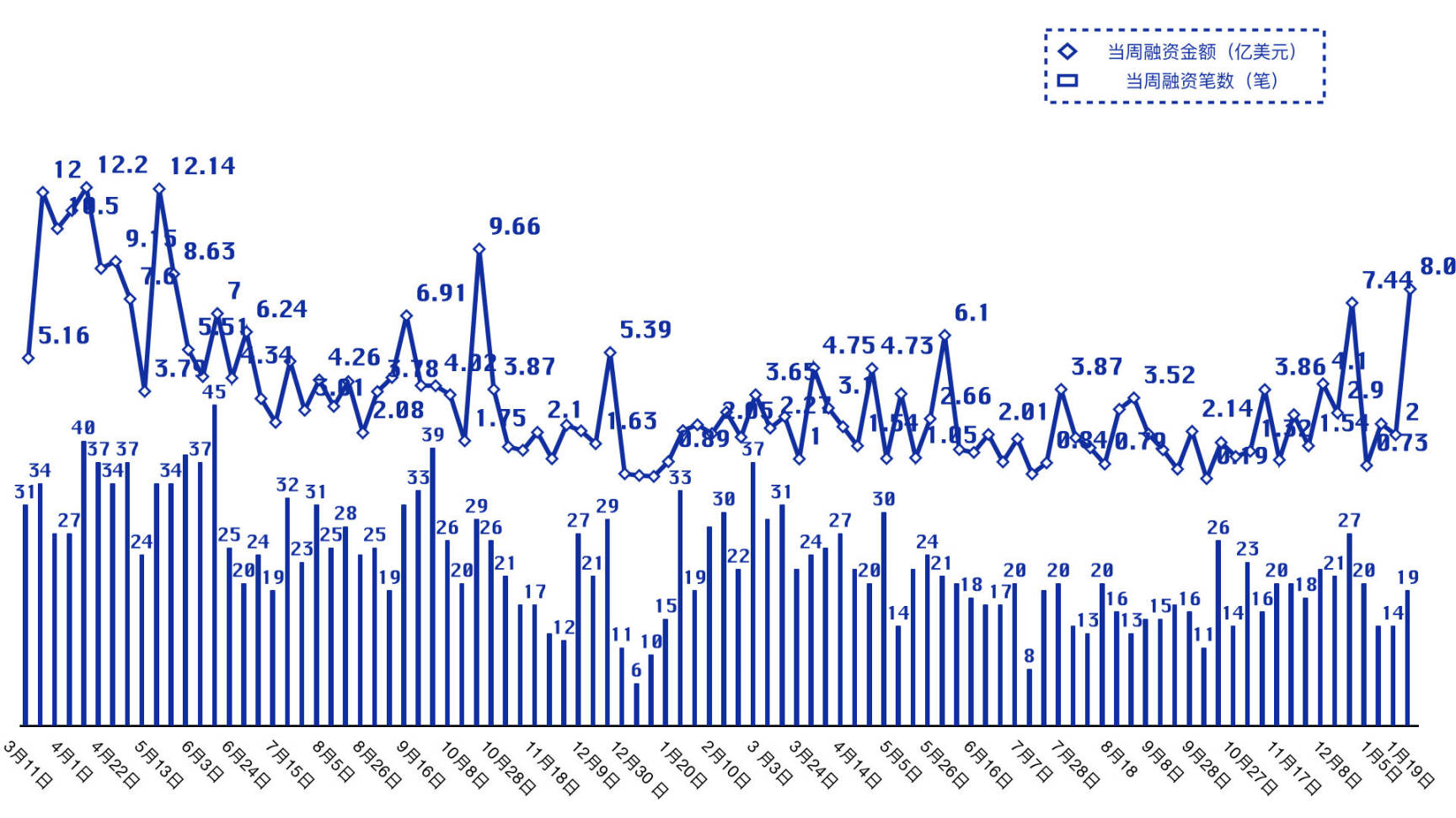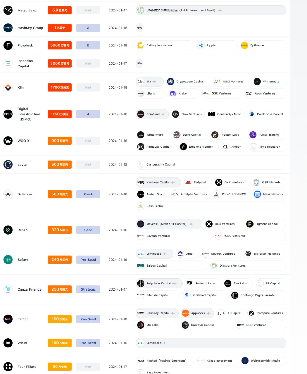 本周过亿美元融资共两笔,分别是混合现实初创公司 Magic Leap 近期获得沙特阿拉伯公共投资基金 5.9 亿美元投资;HashKey Group 完成近 1 亿美元 A 轮融资。千万级美元融资共 4 笔,其中包括加密做市商 Flowdesk 完成 5000 万美元 B 轮融资,Cathay Innovation 领投;机构级加密质押平台 Kiln 获 1700 万美元融资,1KX 领投;Digital Infrastructure 完成 1150 万美元 A 轮融资,CoinFund 领投;