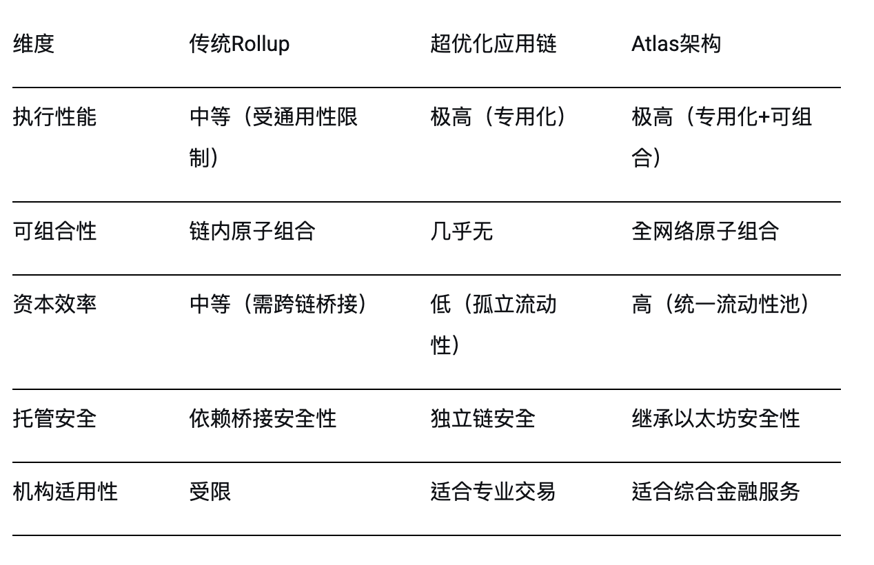 当性能与低手续费已成为行业标配,真正的差异化竞争力在于与以太坊上千亿美元 DeFi 抵押品的无缝组合。Atlas 架构通过以下路径释放新价值:
